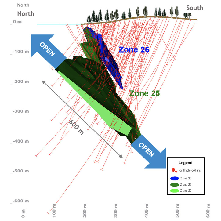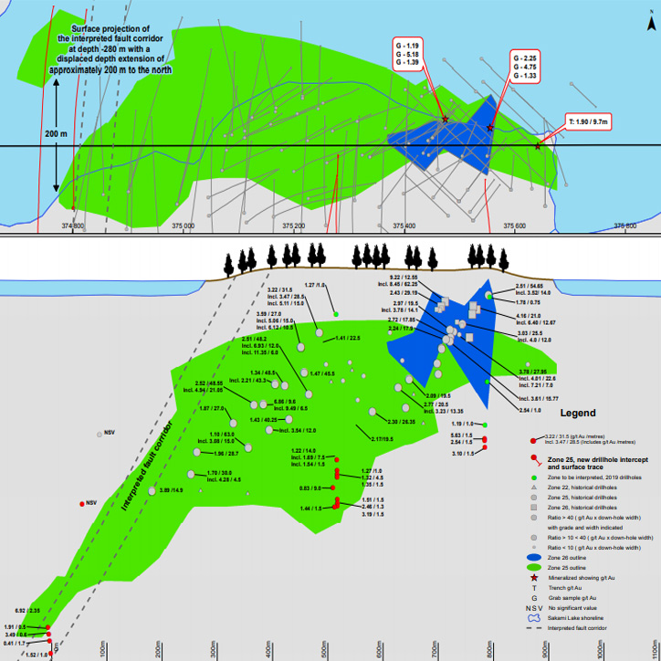 QPM’s flagship is the 100%-owned Sakami project. The potential is in plain sight: it has an ongoing drilling program, significant grades (1.15g/t Au over 80.1m, including . 2.21 g/t Au over 25 m, 6.40 g/t Au over 13 m, 26.35 g/t Au over 11 m) and well-defined and drill-ready targets.